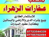 اعلان ….اعلان …. اعلان يعلن مكتب عقارات ومقاولات الزهراء عن توفر ارض للبيع في الجزيرة الغبي ٣٠٠ متر من الشارع العام على شارع الغبي الرئيسي مساحات مختلفة منطقة مسكونة يلتزم المكتب بايصال الماء والكهرباء والتبليط للشوارع عرض الشارع ٨ متر ١٠٠ متر بسعر ٢٢ مليون طابو صرف يزود المشتري بمكاتبة ونسخة من الطابو ووكالة محكمةللمزيد من المعلومات زورونا بمكتب عقارات ومقاولات الزهراء / الجزيرة الشارع الرئيسي قرب الجسر خالد او الاتصال على الرقم 07705702494مستعدون لاستقبال كافة عروض العقارات السكني والزراعي في جميع مناطق البصرة